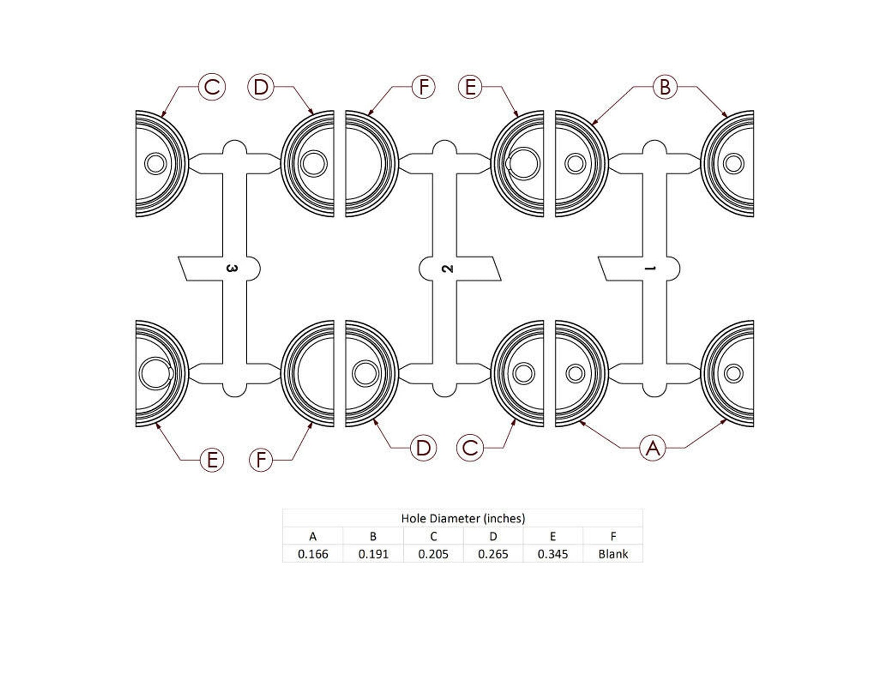 Hole Diameter Sizes: